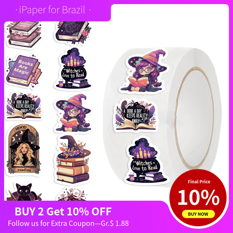 Rolo de 500 Peças de Fita Adesiva, Material Decorativo para Diários de Leitores Ávidos, Envelopes e Adesivos de Selagem