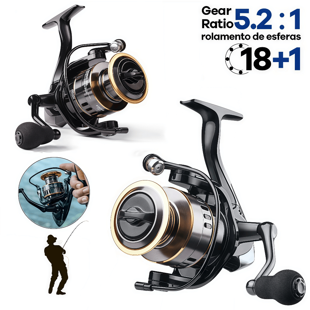 Molinete de Pesca HD1000-7000 - Metal EVA com Max Arraste 10kg para Água Salgada e Mar