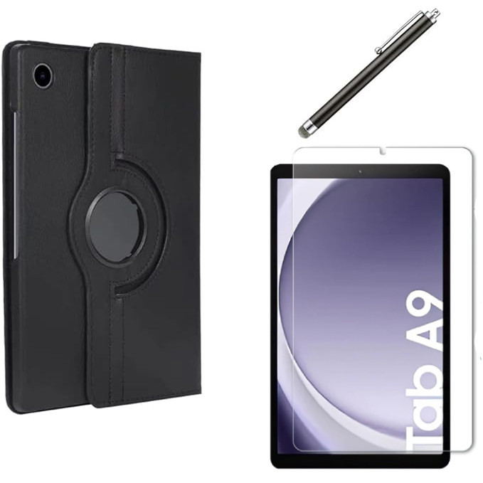 Kit Case Giratoria P\Tablet Galaxy Tab A9 + Película 9H + Caneta Touch
