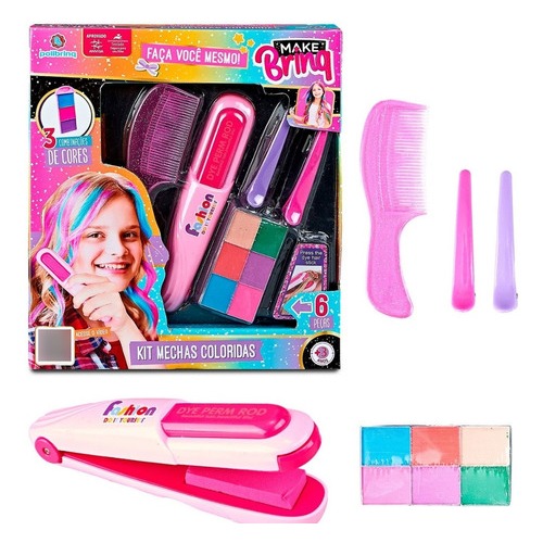 Kit de Salão de Beleza Infantil Brinquedo Meninas Faz de Conta 7 Peças