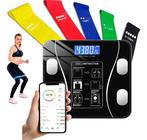 Kit Balança Corporal Bioimpedância Bluetooth + Super Mini Band com 5 Faixas Elástica Fisioterapia Ginastica