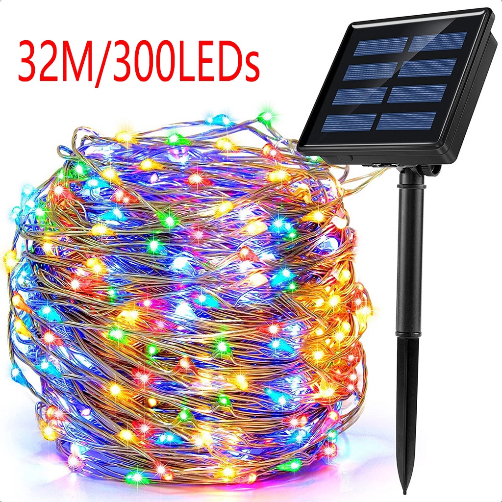 300LED/32M Luz Solar Uso Externo Recarregável 8 Modos Interruptor Festa De Natal Jardim Feriado Casamento Villa E Outras Decorações (Envio Rápido)