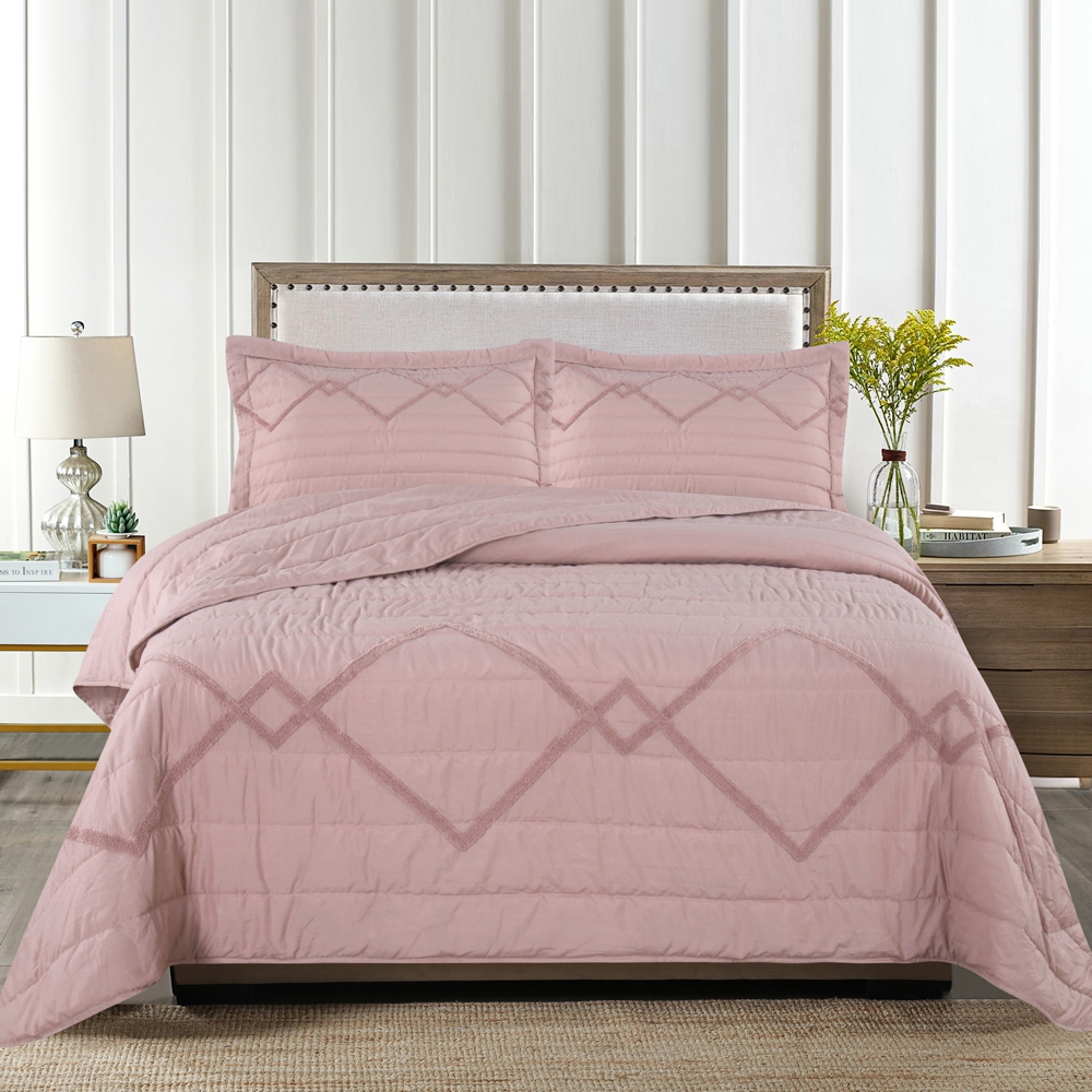 Kit Cobre Leito Colcha Casal 3 Peças Matelado Dots Dupla Face 300 Fios Com Porta Travesseiro
