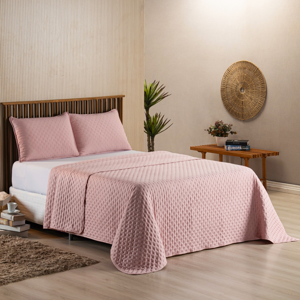 Kit Cobre Leito Colcha Casal 3 Peças 300 Fios Ponto Russo Matelado Dupla Face