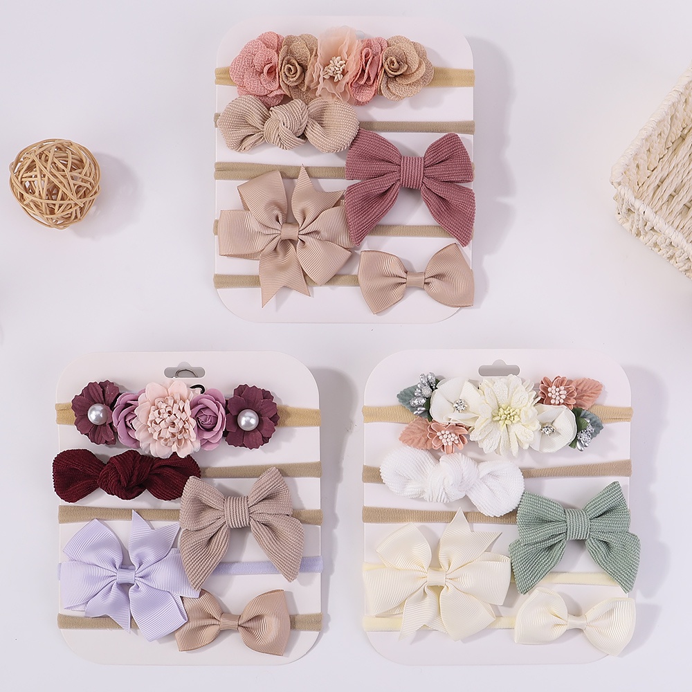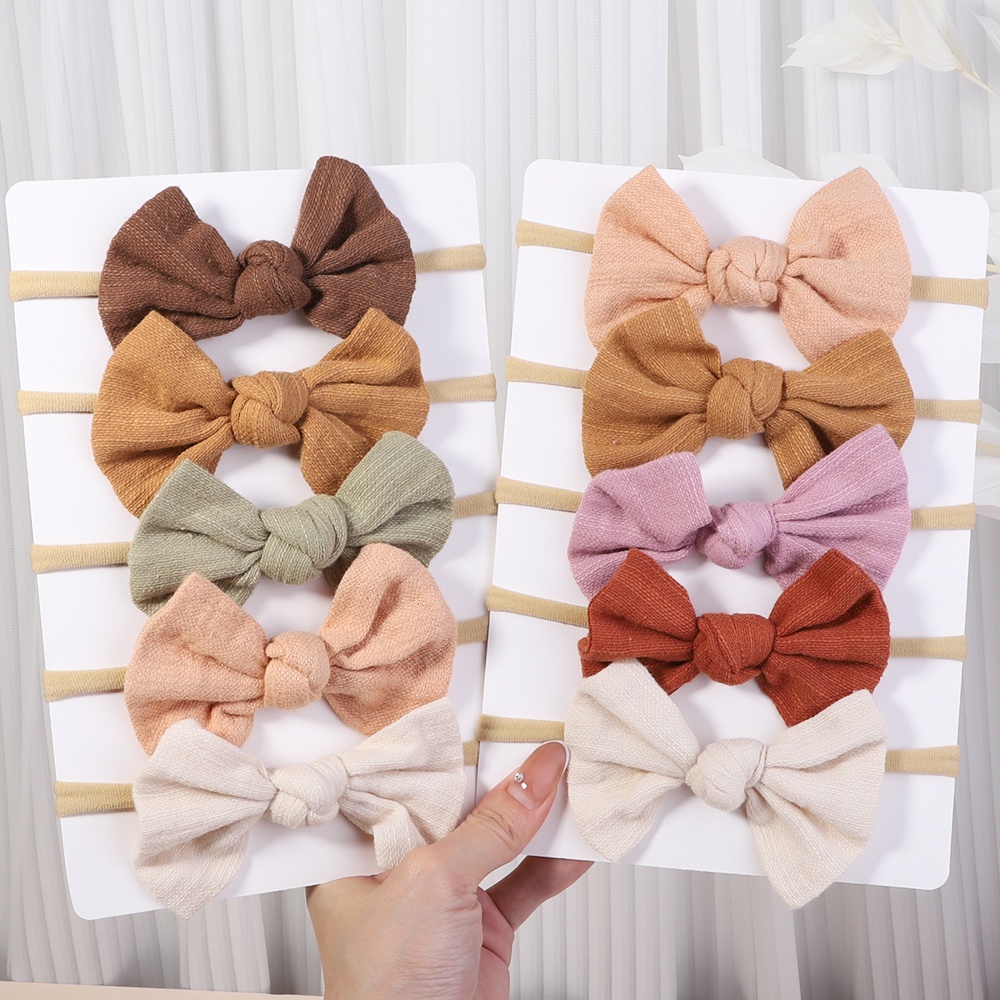 5Pcs/Set Solid Color Bowknot Headband Girls Cute Newborn Boutique Headwear Cabeleireiro Feito A Mão Accessoires