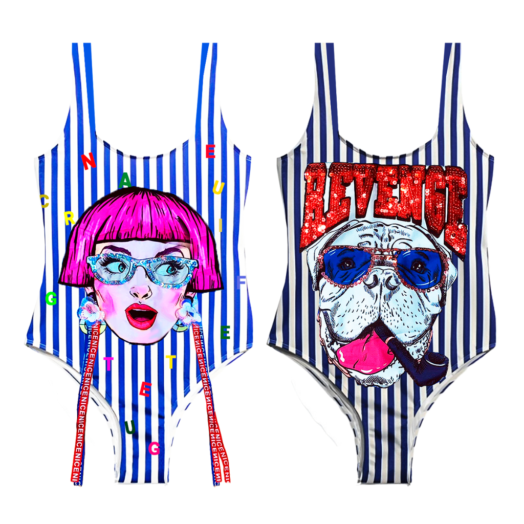 Maiô Infantil Juvenil Estampa De CupCacke Com Listras E Laço em Poliamida