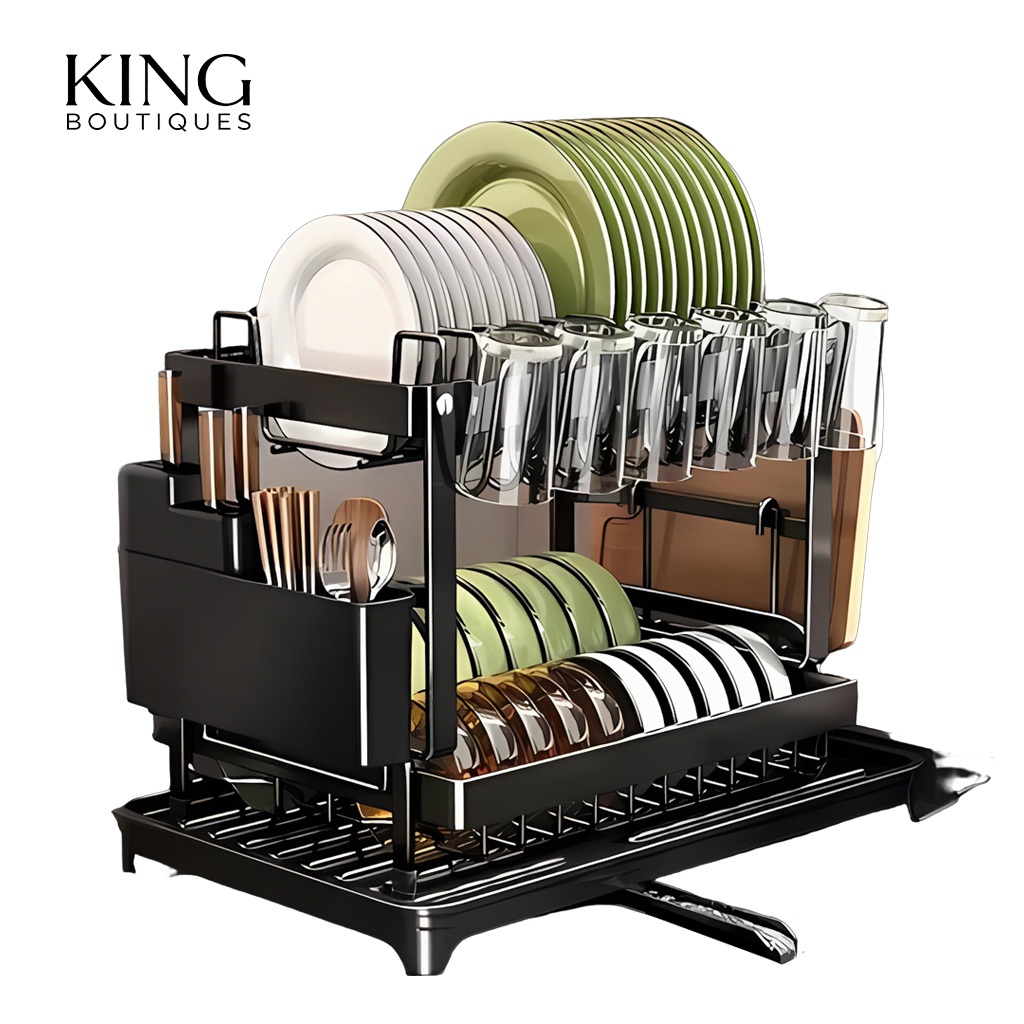 Escorredor De Louças Aço Inoxidável Preto Organizador Rack Cozinha Pia 2 Andares 12 Pratos
