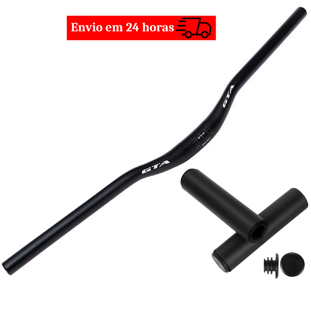 Guidão De Bike Curvo Gta Aluminio 31.8mm x 720mm Preto Manopla Punho Bicicleta Silicone Mtb Aro 26 29