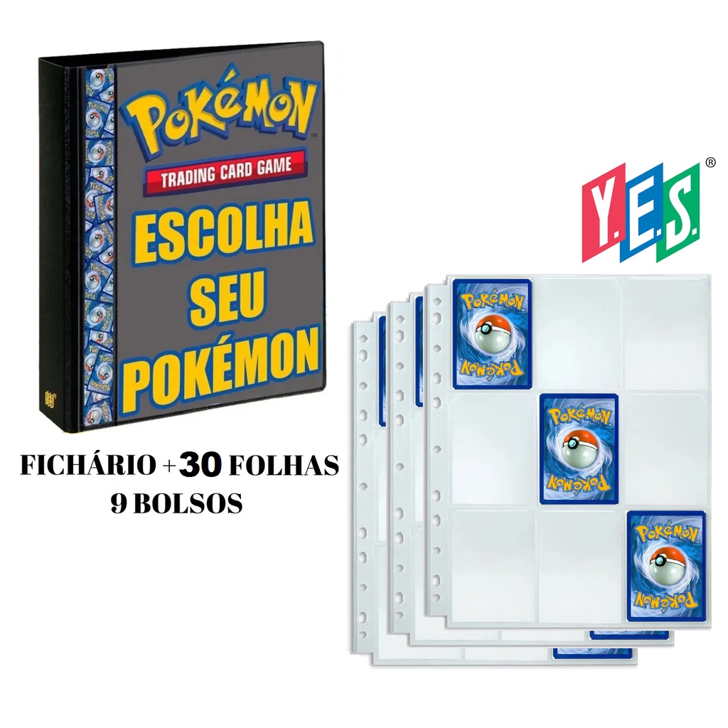 Fichário Álbum Pasta Cards Pokemon + 30 Folhas 9 bolsos