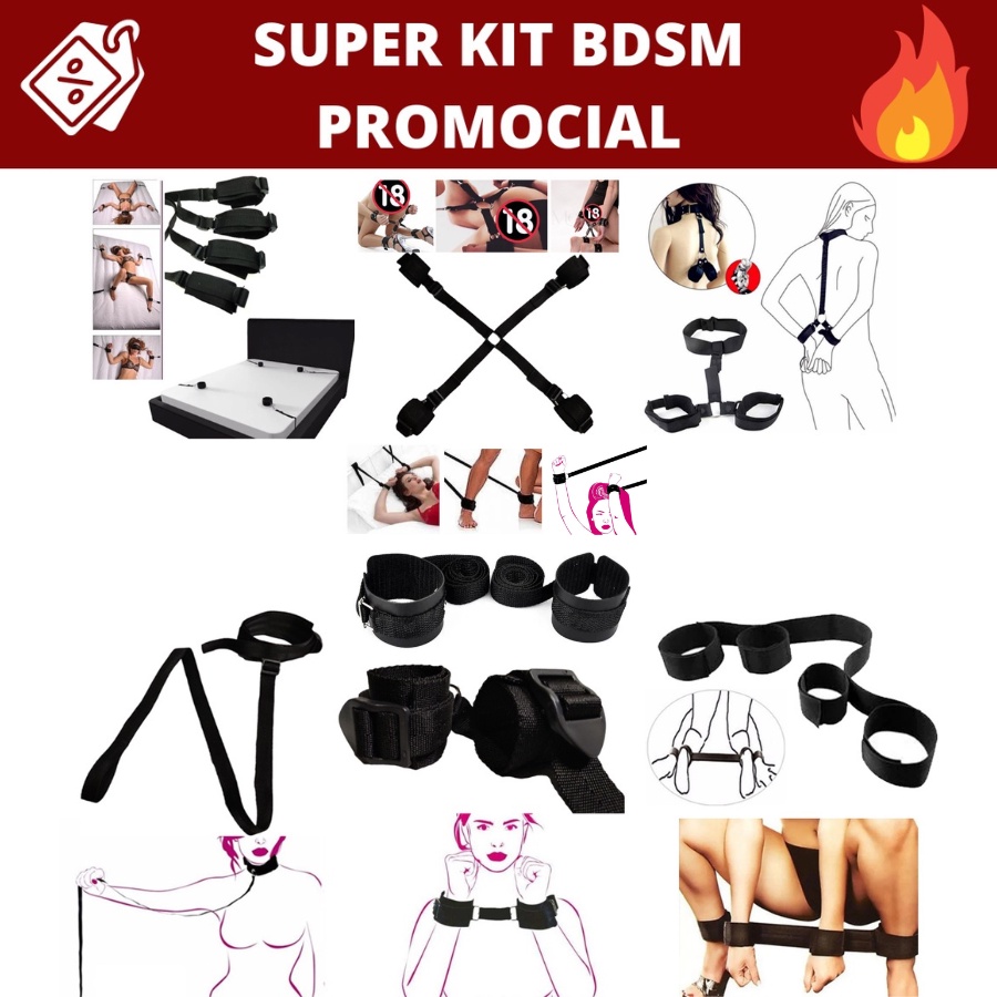 Super Kit BDSM 6 Peças algemas coleira amarra prender na cama em x Bondage Submissão Dominação 50 tons de cinza Promoção