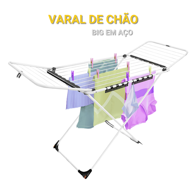 Varal de Chão Enorme Em Aço Dobrável Com Abas e Seca Meias Reforçado e Compacto - Someway