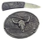 Fivela Knife Cabeça Crânio de Boi Bull Rodeio