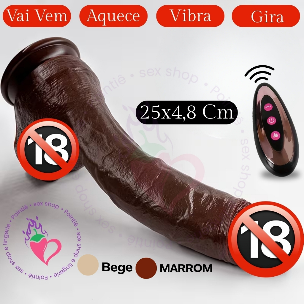 Pênis Realista Preto 25 Cm Masturbador Vai e Vem Consolo Grande Grosso Silicone Aquece Recarregável
