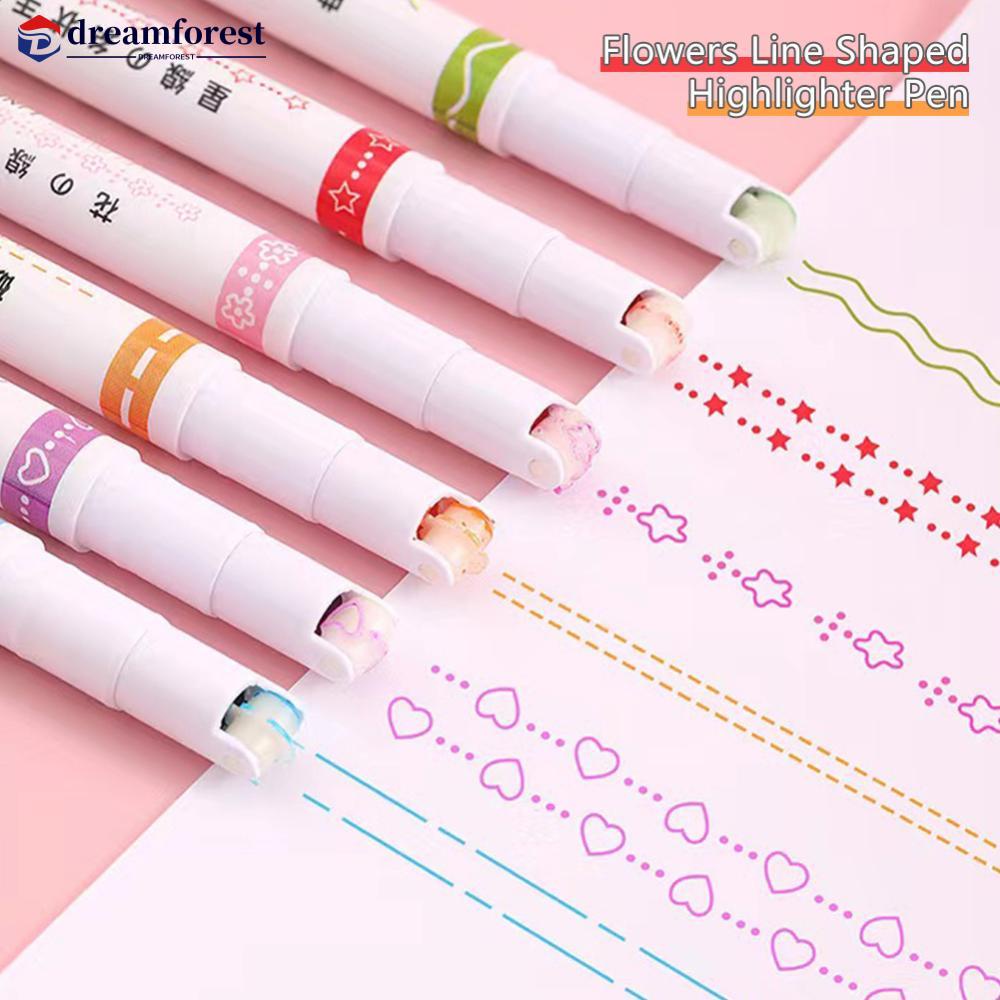 DREAMFOREST Marcador De Linha De Flores Com Caneta Marcadora De 1 Peça Em Forma De Curva Rolo Para Escrever Jornalismo Desenho De Papelaria D7H2