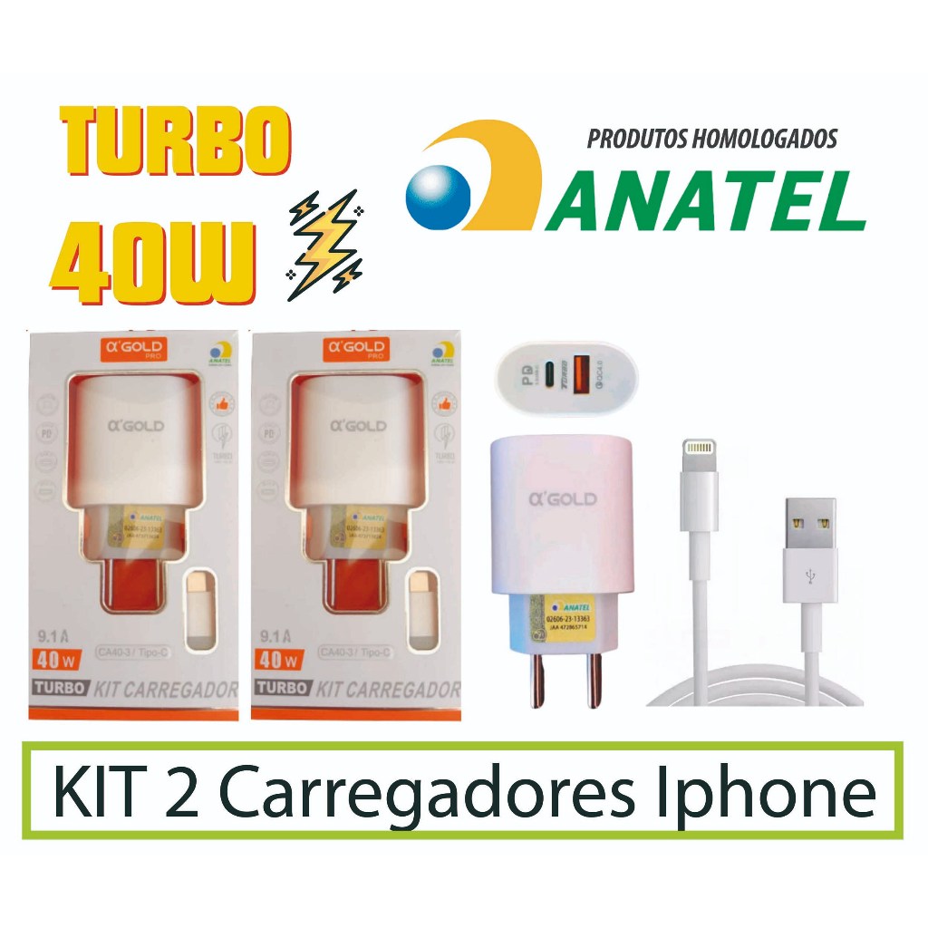 Kit 1 2 ou 3 Carregador IOS 40w Turbo Homologado Anatel Para iPhone X XR 11 12 13 14 15 Pro MAX PLUS