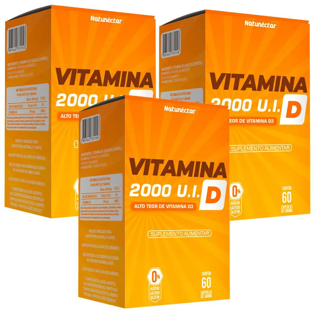 Kit 3 Vitamina D 500Mg 60 Cápsulas Ergocalciferol, Calciferol 2.000 Ui