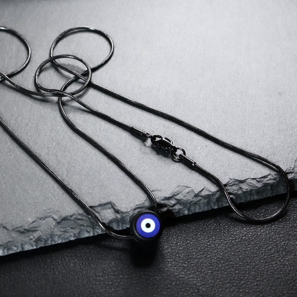 Colar Olho Grego Preto/ Corrente Preta Aço Inoxidável/ Colar Masculino olho grego