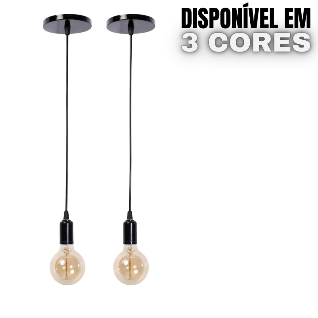 Kit 2 Luminária Pendente Simples Fio Cabo Retrô Vintage Soquete Bocal E27 Bivolt