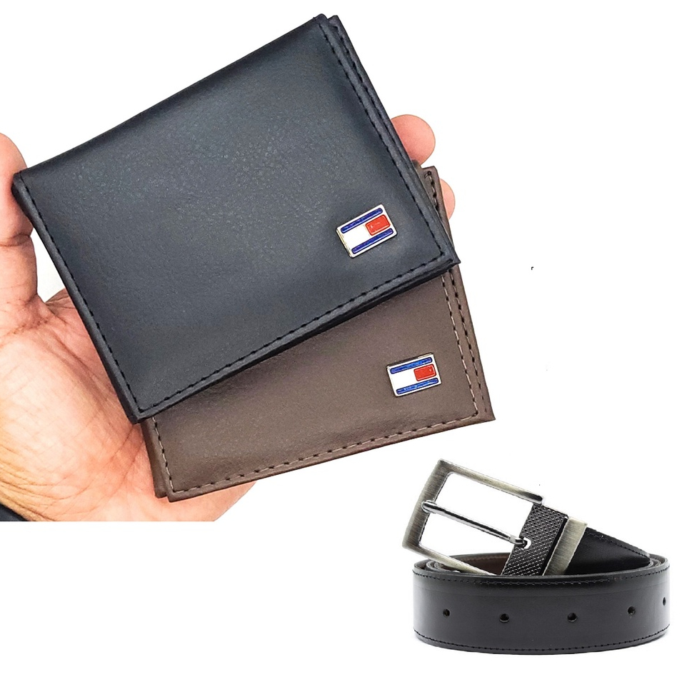 Kit Carteira Masculina Slim de Couro Modelo L Com Cinto Dupla Face Ótima Oferta
