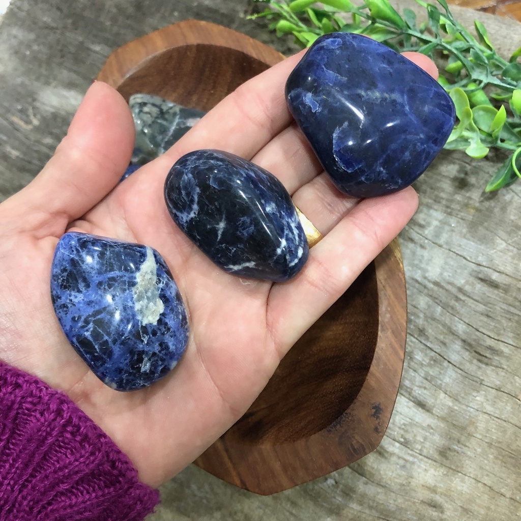Pedra Sodalita. A Pedra do Ano 2024 Bruta ou Rolada. Pedra Equilíbrio Emocional e Raciocínio Lógico