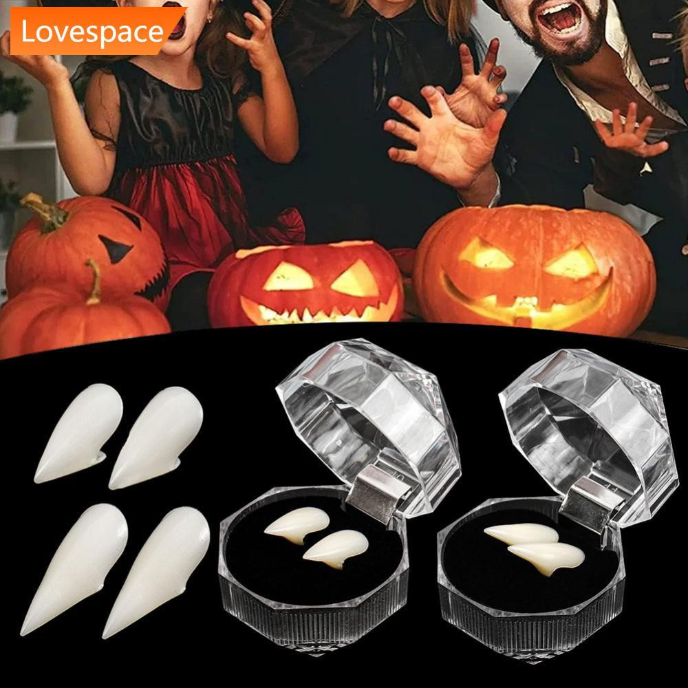LS-STORE 1 Par de Dentes de Vampiro Zumbi DIY Cosplay Props Dentes Falsos Sólidos Dentes de Resina para Decoração de Más