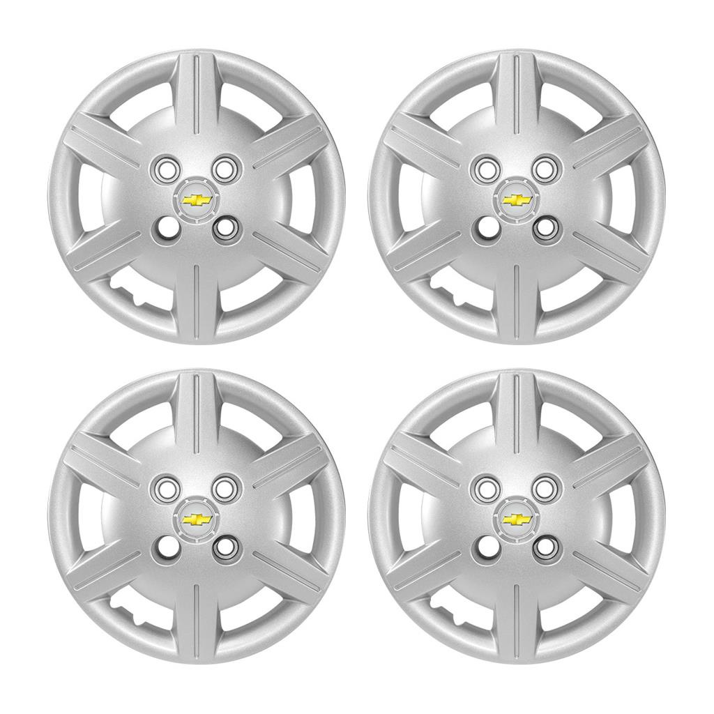 Jogo Calota Aro 13 Gm Corsa Classic 2012 2013 2014 2015 Prata Emblema Prata