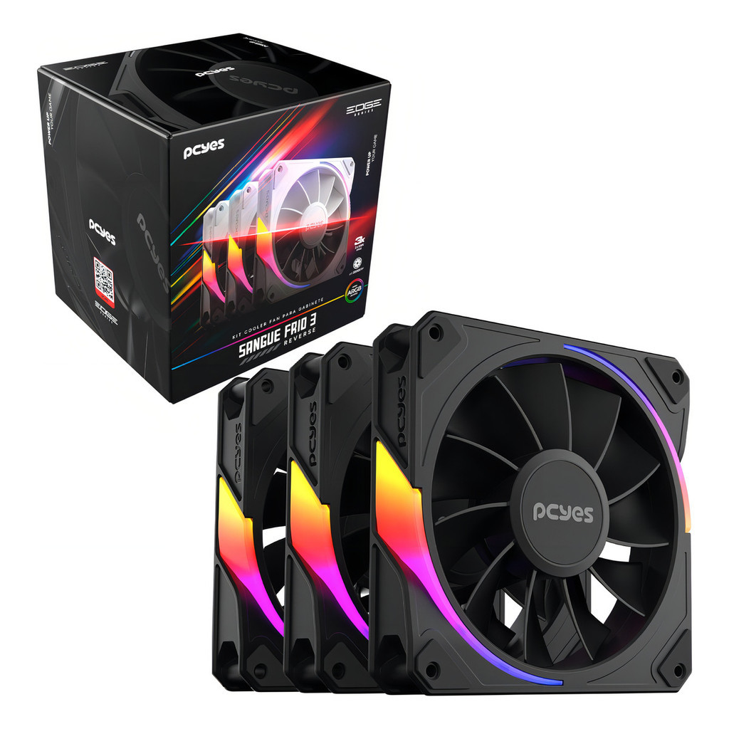 KIT COOLER FAN PARA GABINETE 3UN SANGUE FRIO 3 ARGB BLACK VULCAN REVERSE 120MM PCYES - K3ARGBSF3RVBR