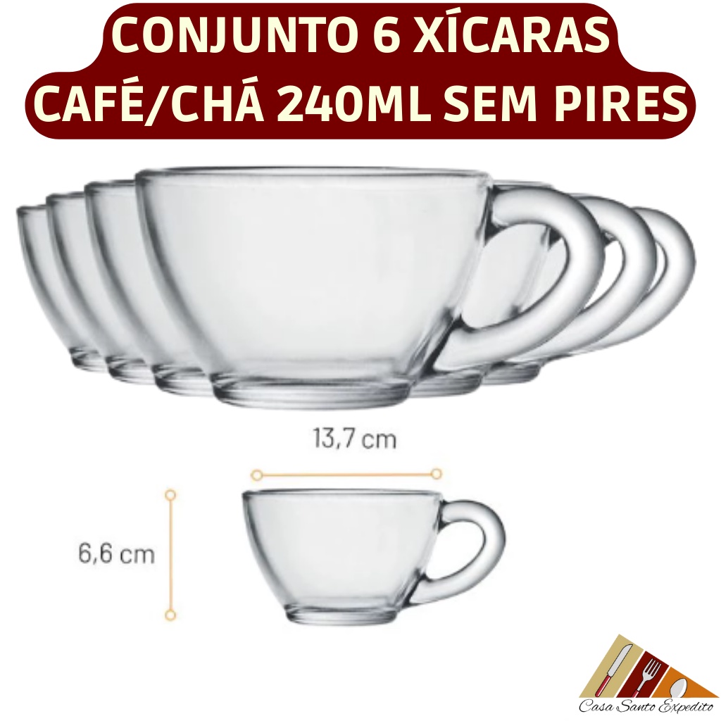 Kit 6 Xícara PERA CRYSTAL Vidro 220ml Chá Café Conjunto Xicaras Louças
