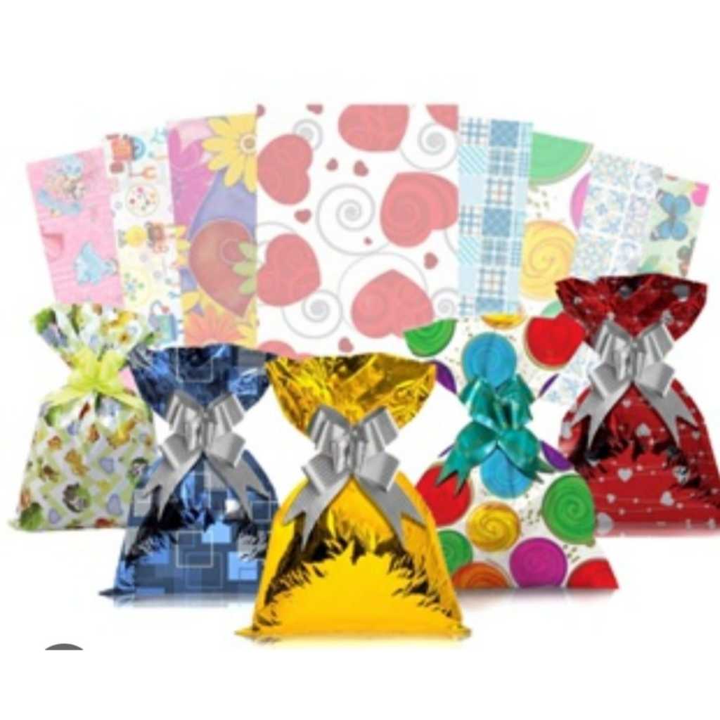 50 sacos de presente metalizados sortido com varias estampas em um unico pacote
