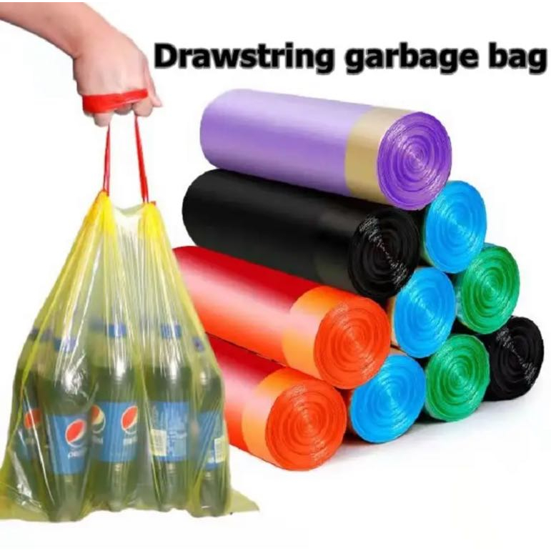 Sacos De Lixo De Plástico Com Cordão Alças 45 X 50 cm 5 ROLOS