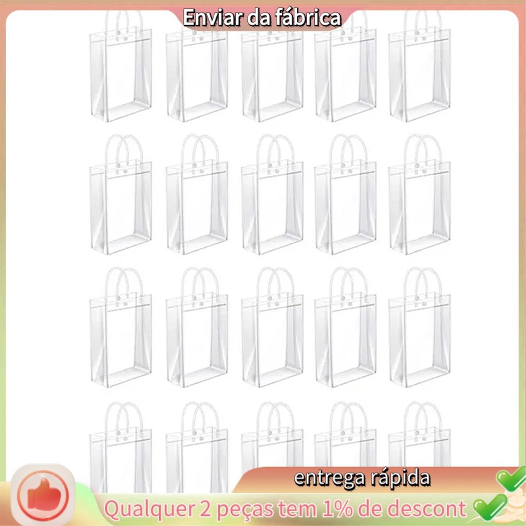 50 Sacos De Presente Claros Dos Pces Com Alças De Plástico Transparentes Reutilizáveis Sacolas Doces Goodie Para O Casam