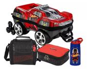 Kit Hot Wheels 3D Mochila Rodinha Lancheira Estojo Triplo PT