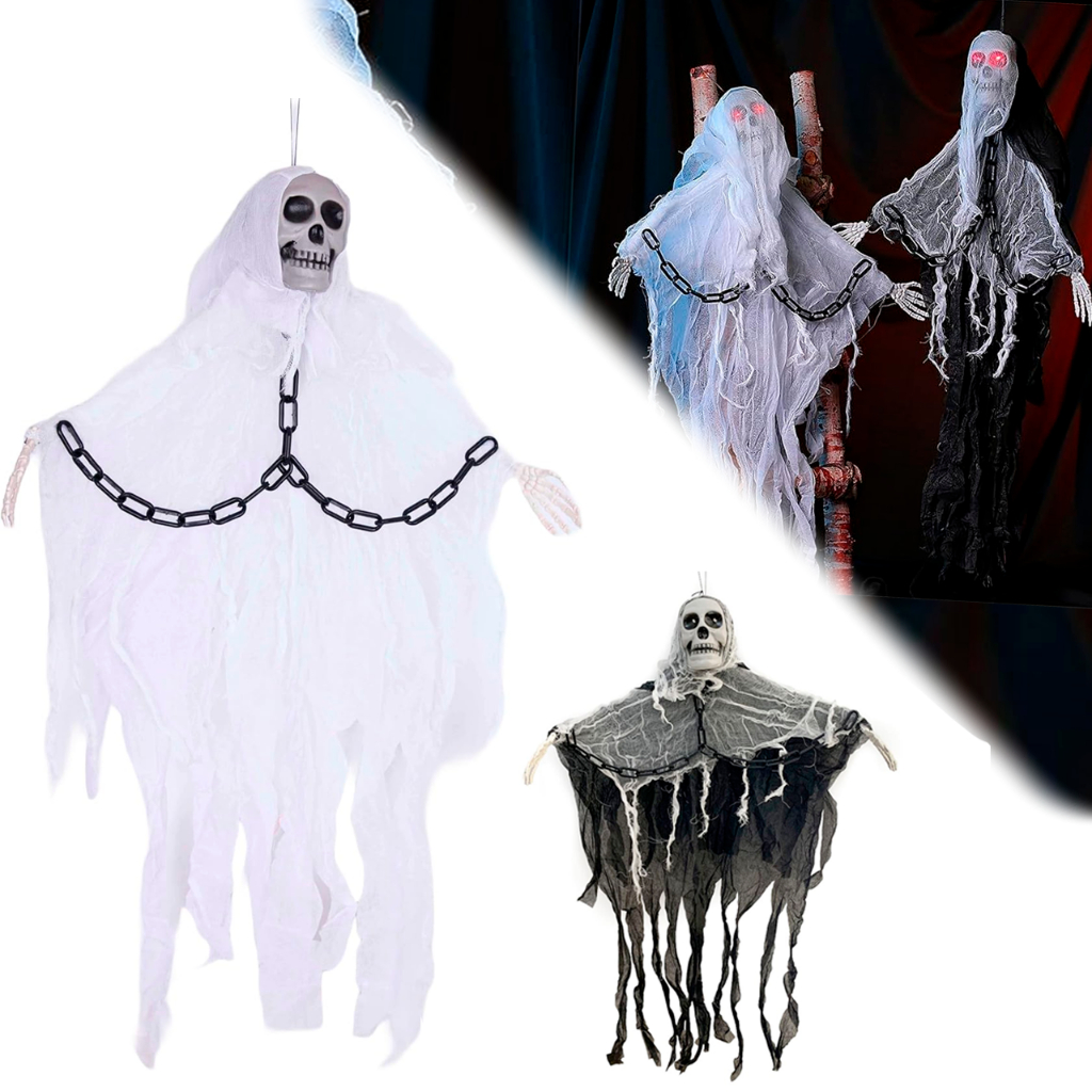 Caveira Fantasma com Som e Led Cranio Esqueleto Decoração Enfeite Porta Halloween Festa