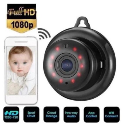 Câmera HD V380 Pro Pequeno Sem Fio Ip WiFi Visão Noturna Movimento 1080P