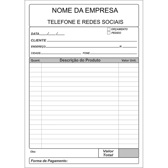 Bloco de Pedido Personalizado p/ Empresas | Talão Orçamento A5 ( 15x21 ) 100 Folhas | 2, 5 e 10 Unid