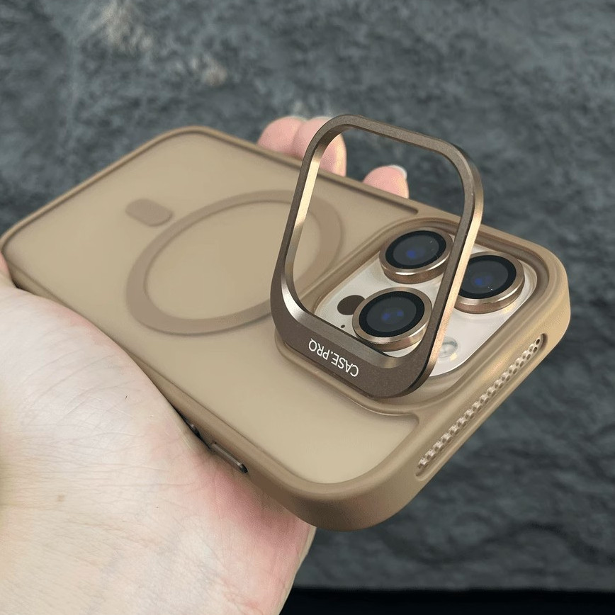 Capa De Telefone Magnética Luxuosa Fosca Ouro Deserto 16 Pro max Para iPhone 16 15 14 13 12 11 15Plus 14Plus 16Plus 11Pro Com Suporte De metal Sensação De Pele E Traseira Rígida