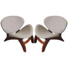 Kit 2 Poltronas Decorativa Mona Luxo Linho Bege e Base Madeira Maciça
