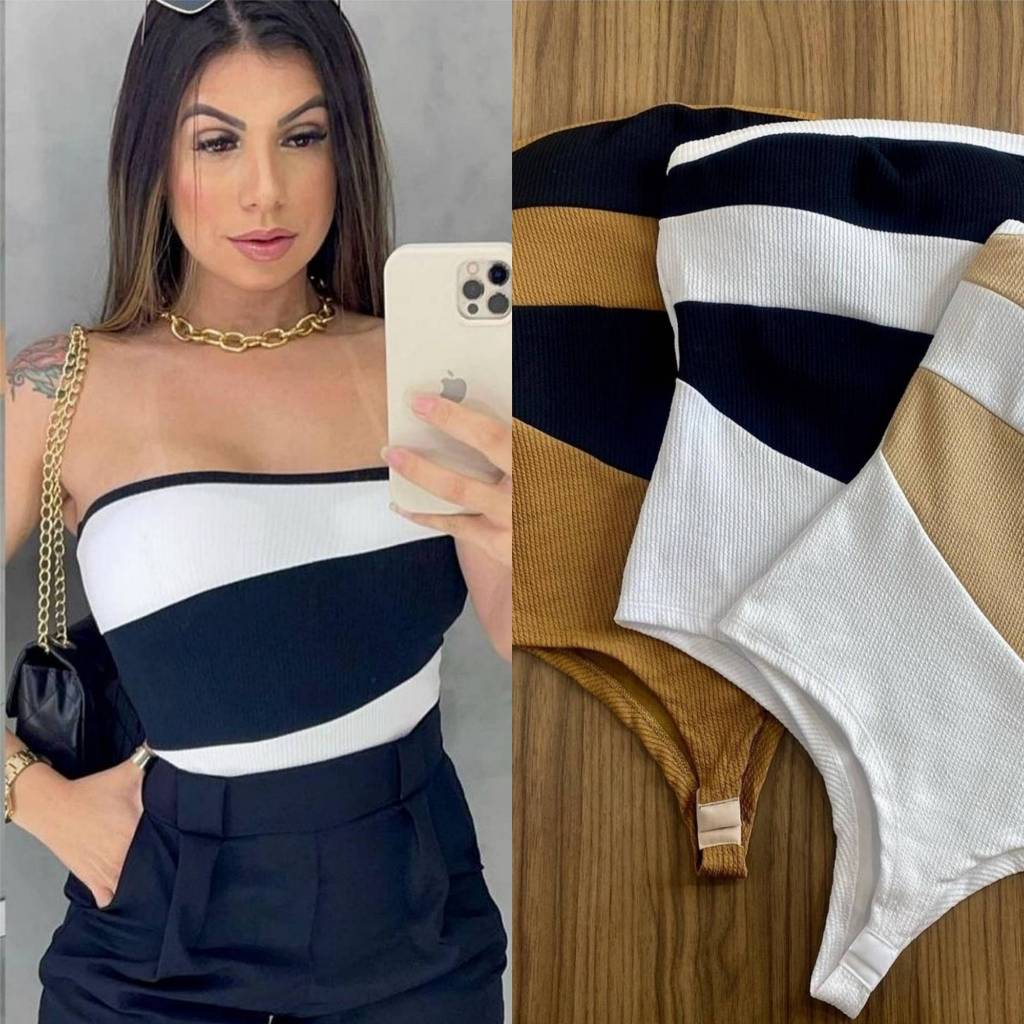Body Feminino Kit-2 Tomara que Caia com Bojo Bicolor Preto / branco Verão