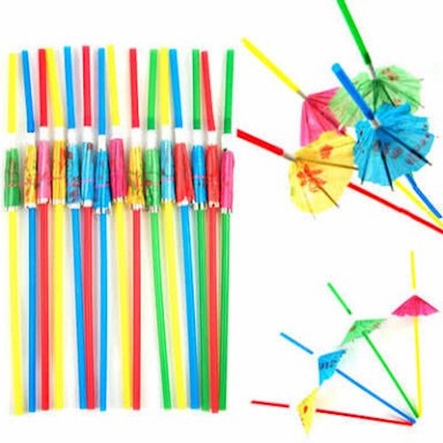 Kit 60 Canudo Sombrinha Guarda-chuva Enfeite P/ Drinks Copo Festa Tropical /palitinho de fruta