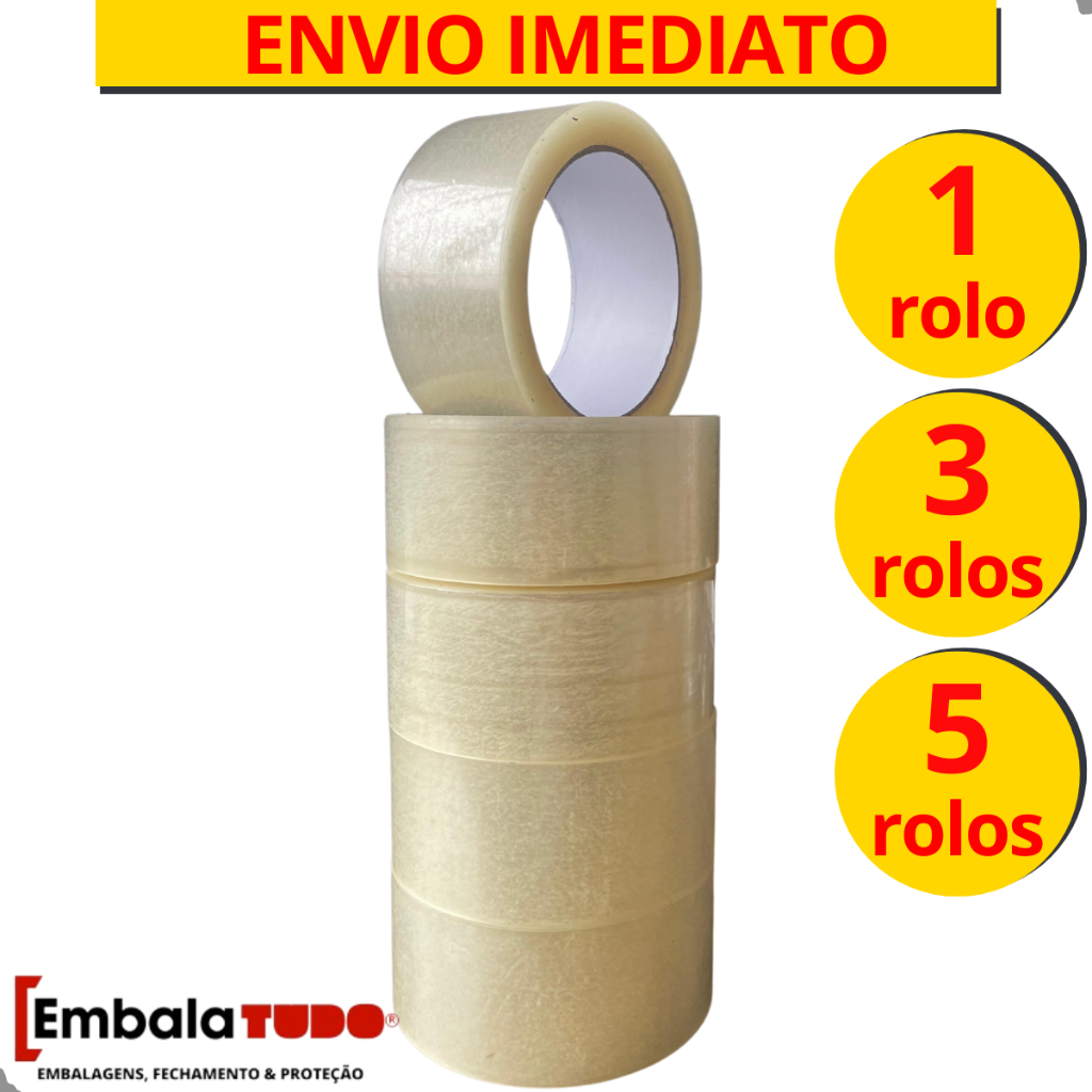 Kit 5 Fita Adesiva 45 X 100 Metros Transparente Durex Larga - 5 Rolos Para Embalar Caixas