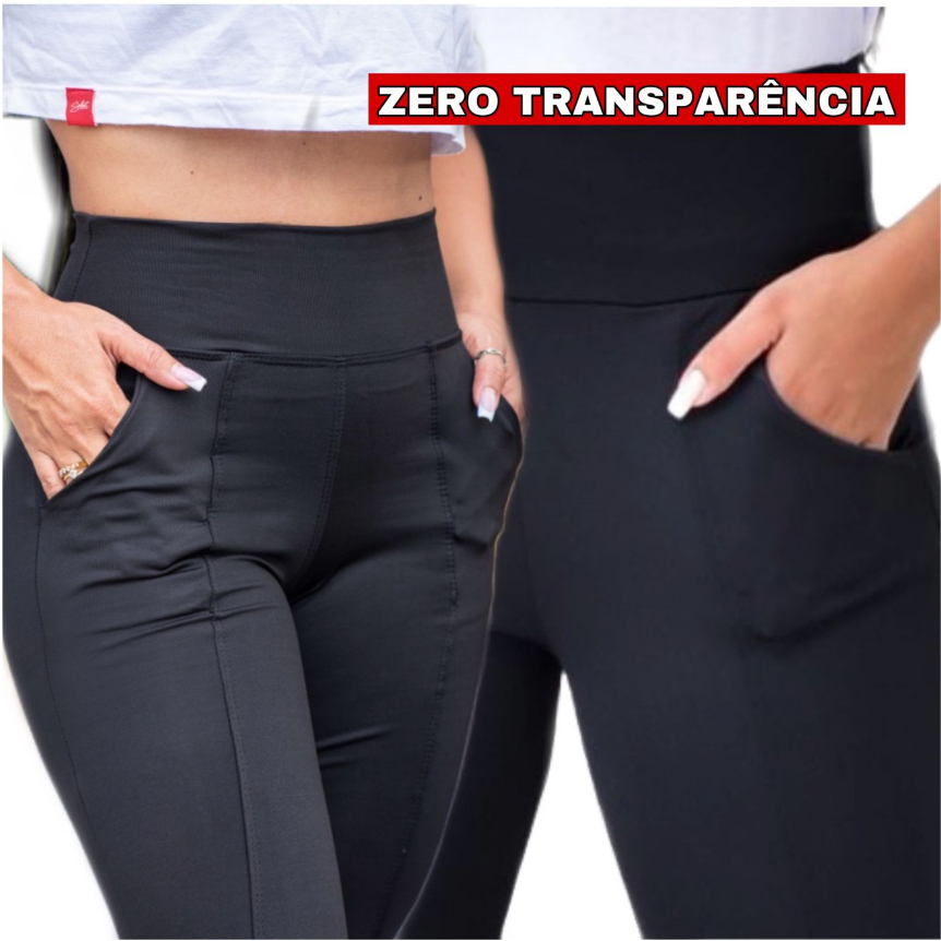 Kit 2 Calças Legging Plus Size Feminina Grossa Legue Suplex Com Bolso e Cintura Alta do 38 ao 56