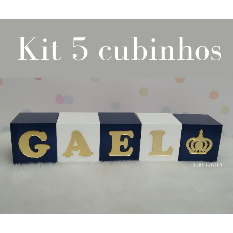 Kit 5 Cubos com Nome do Bebê Letras Espelhadas dourado