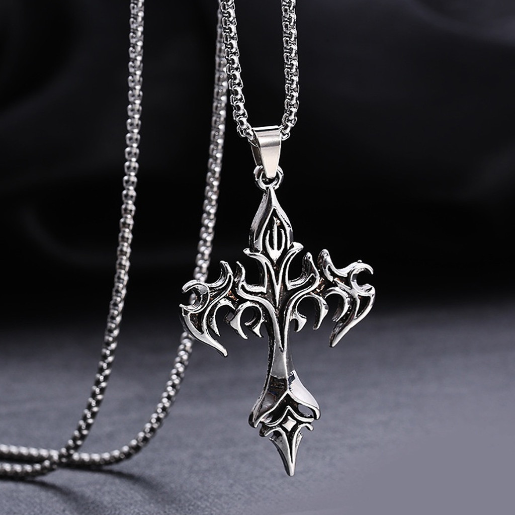 Moda Retro chama cruz pingente colar feminino longo corrente Punk gótico acessórios de moda colar jóias góticas