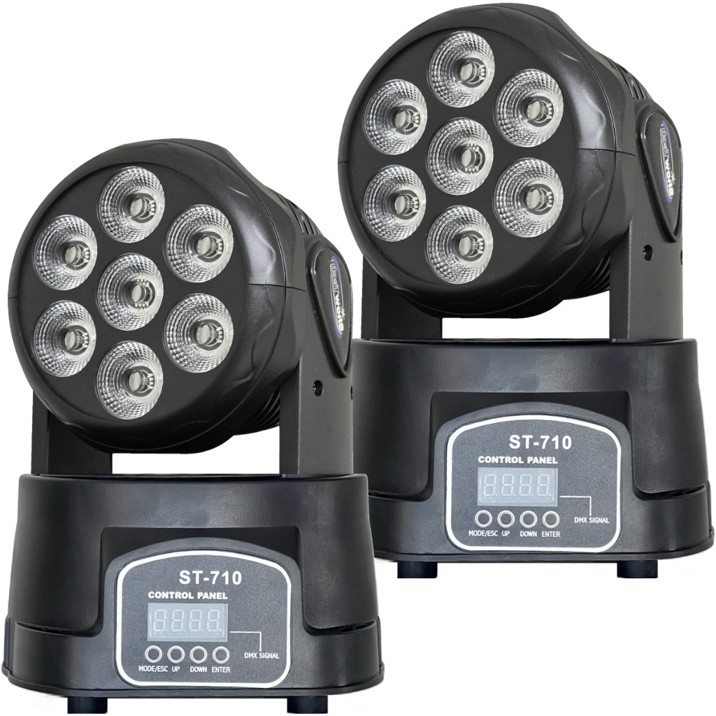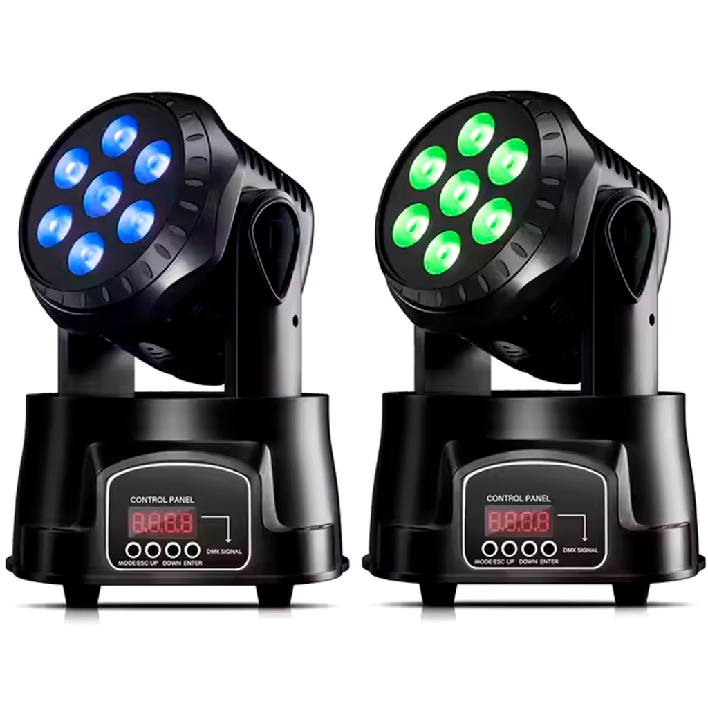 Kit 2 Cabeças Móveis LED Wash Coloridas 7 LEDs 12W RGBW DMX Sensor Automático de Som