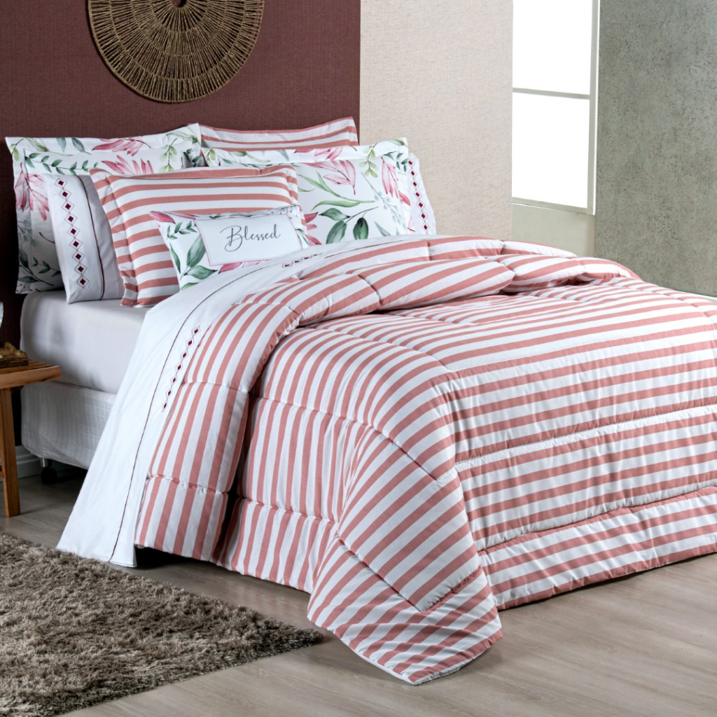 Kit 11 Peças Edredom + Jogo de Lençol Queen ou King Completo 180 Fios Algodão Blessed Cama Posta