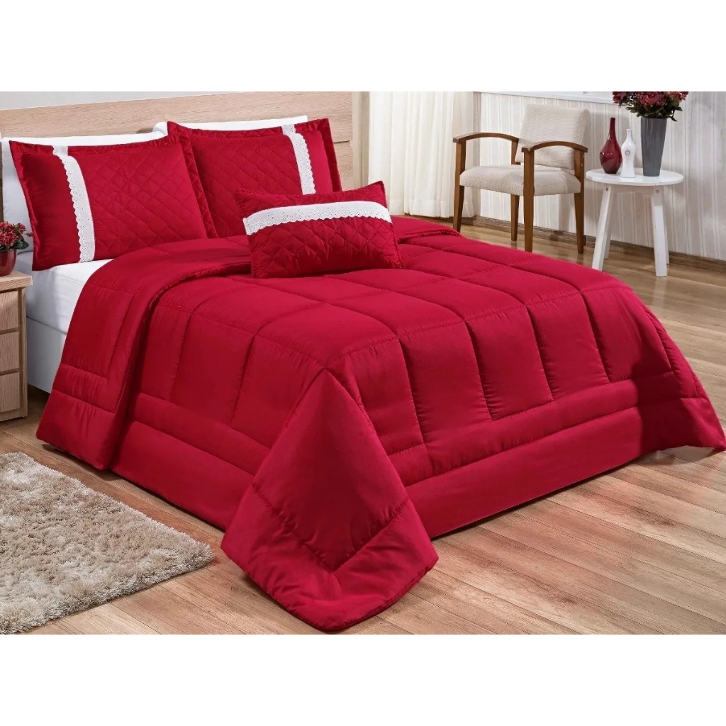 Kit Edredom Casal Padrao Queen Com Jogo De Cama Lençol 6 Peças Aconchego