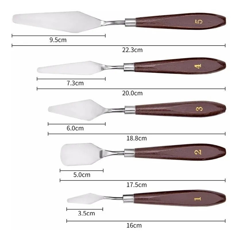 Kit 5 Espatulas Aço E Madeira Para Pintura Tela Artesanato