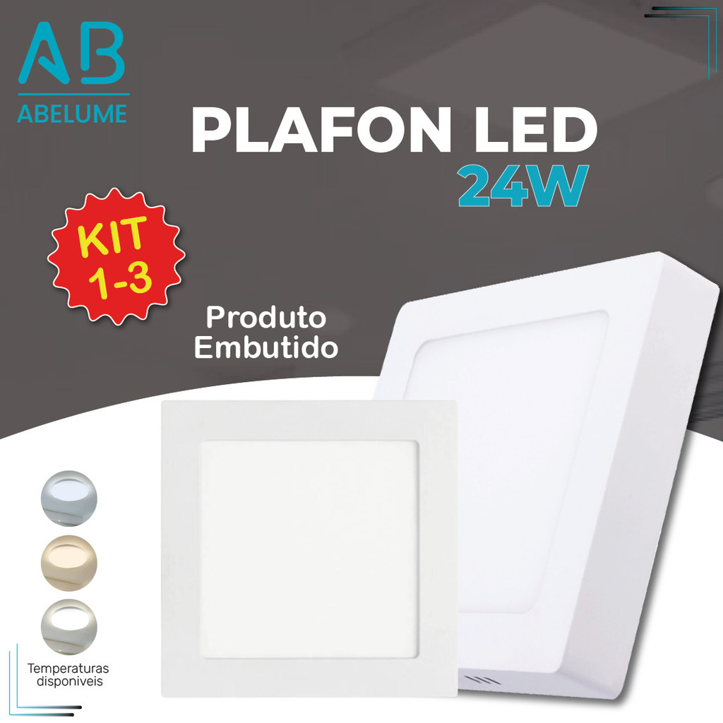 kit 3 un Painel led 12w/18w/ 24w Aluminio Plafon Quadrado luminaria Embutir/Sobrepor