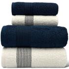 Jogo de Toalhas Gigante / Banhão 4 Peças Tomie - Azul Marinho/Branca - ( 2 Banho + 2 Rosto) LMpeter