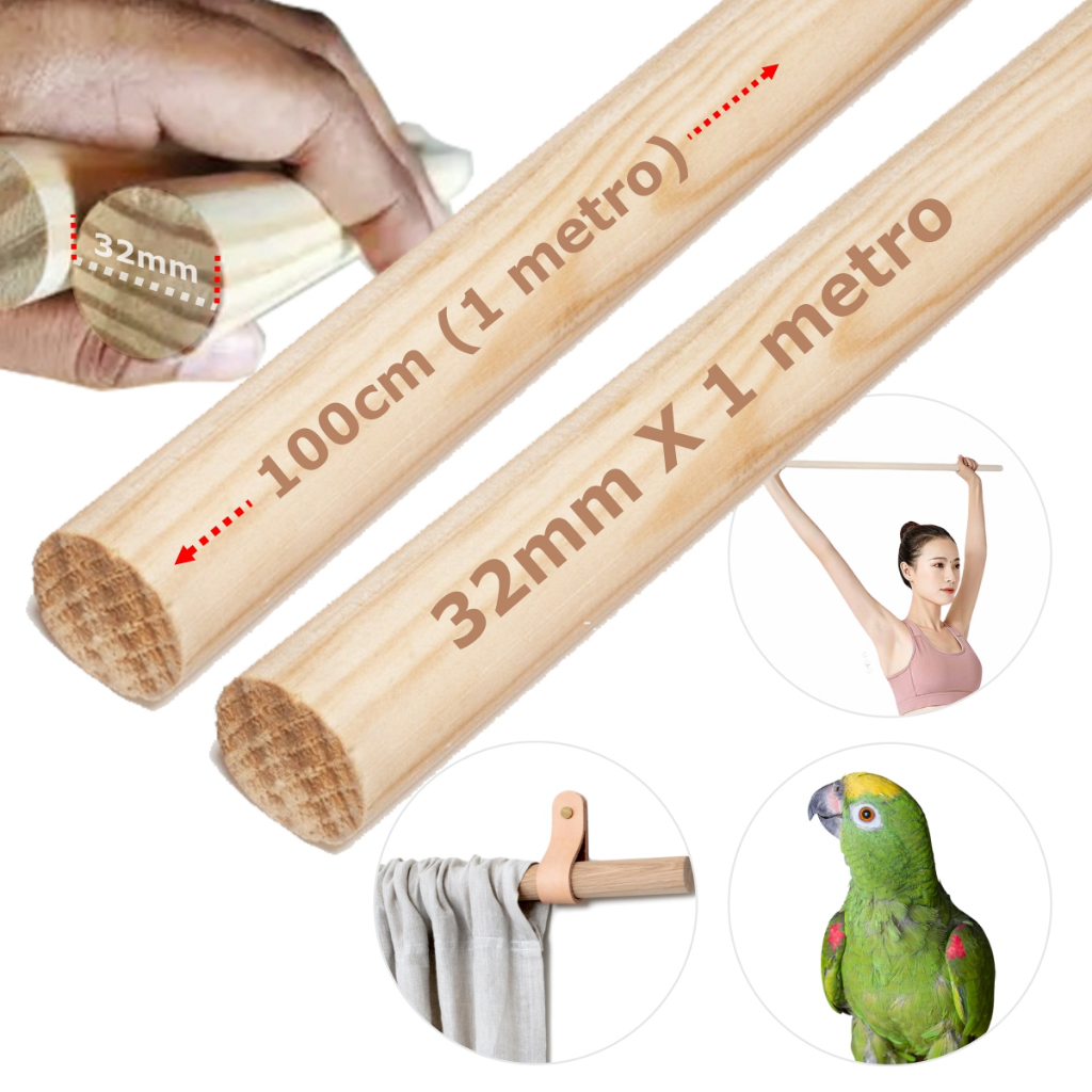 Cabo Bastão de Madeira 32mm x 1metro Poleiro Pinus Liso Banners Bandeiras Macramê Artesanato